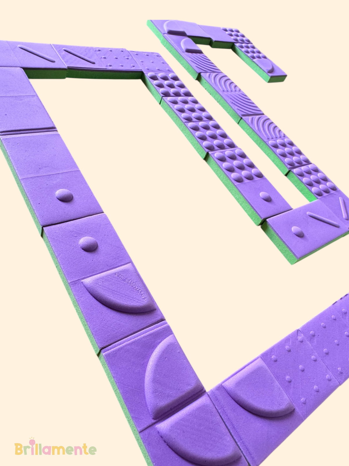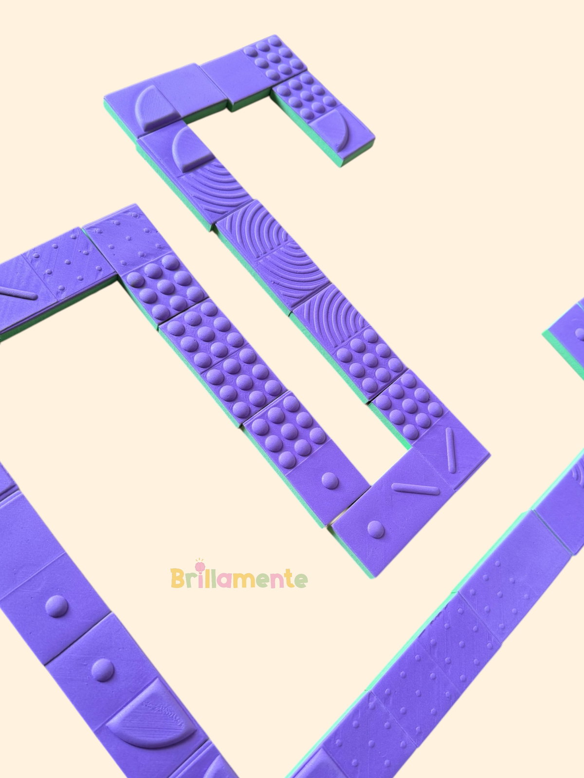 Este dominó táctil invita a niñas y niños a explorar diferentes relieves y texturas a través del juego activo, favoreciendo el desarrollo perceptivo, cognitivo y sensorial.
