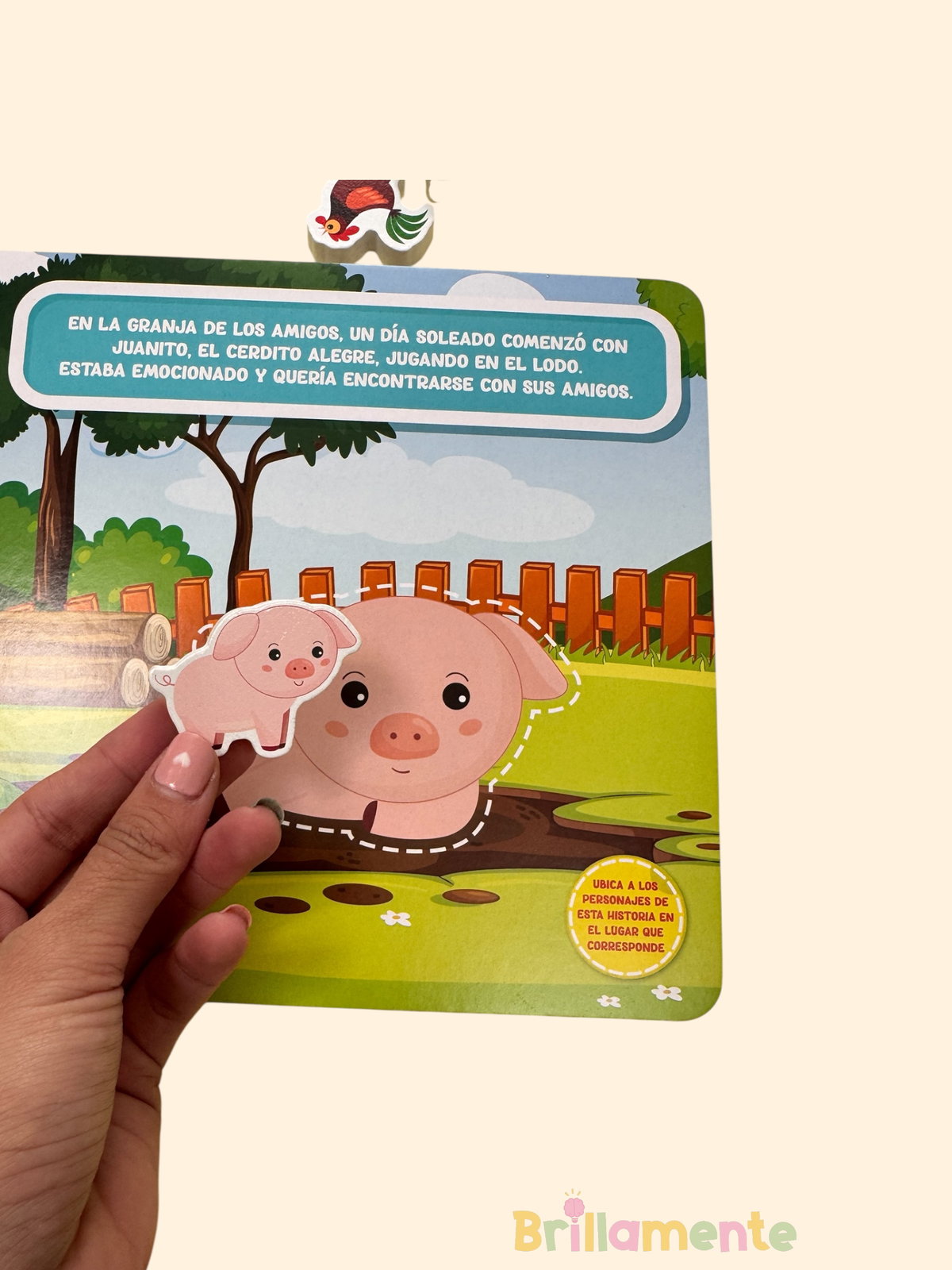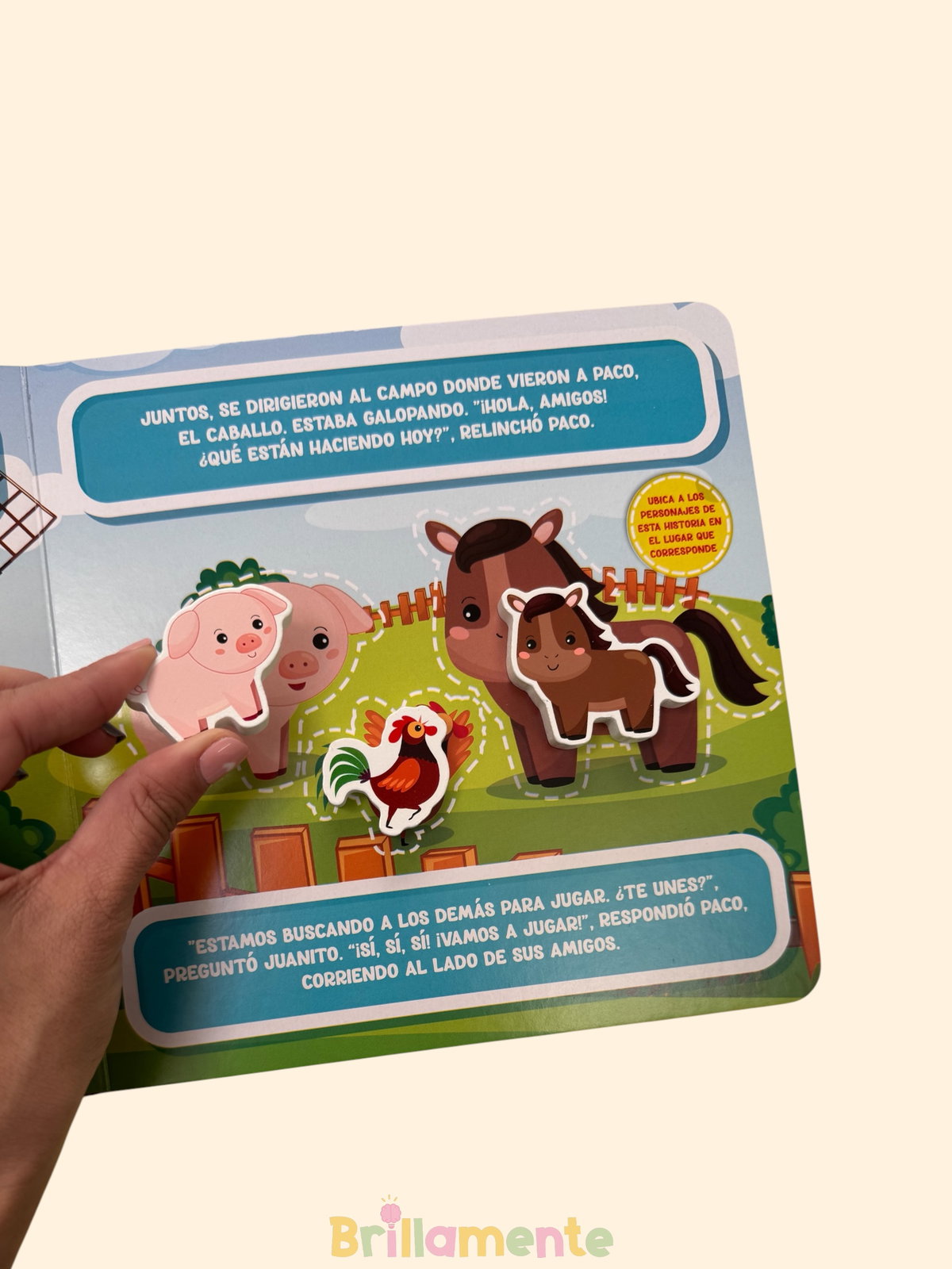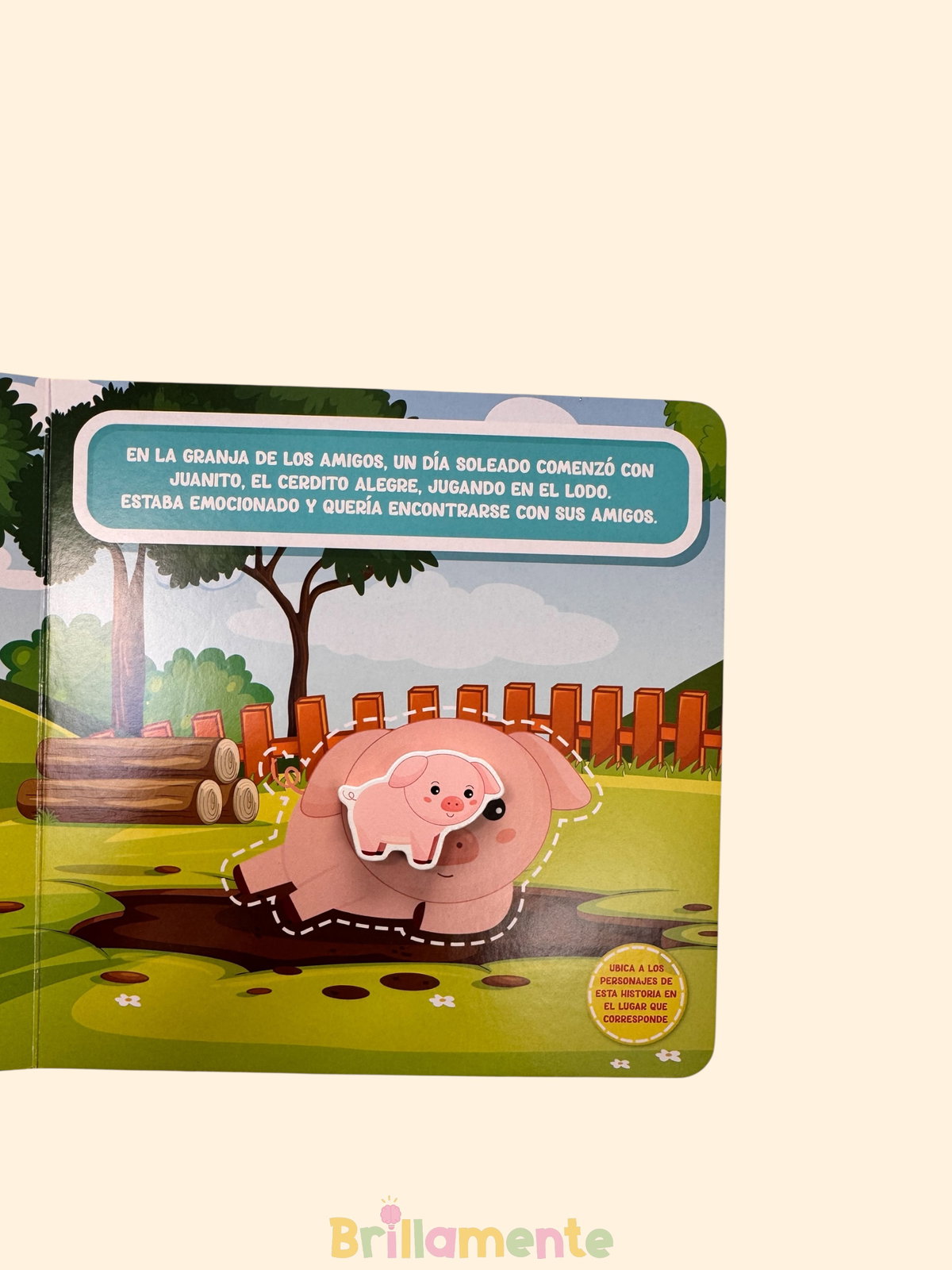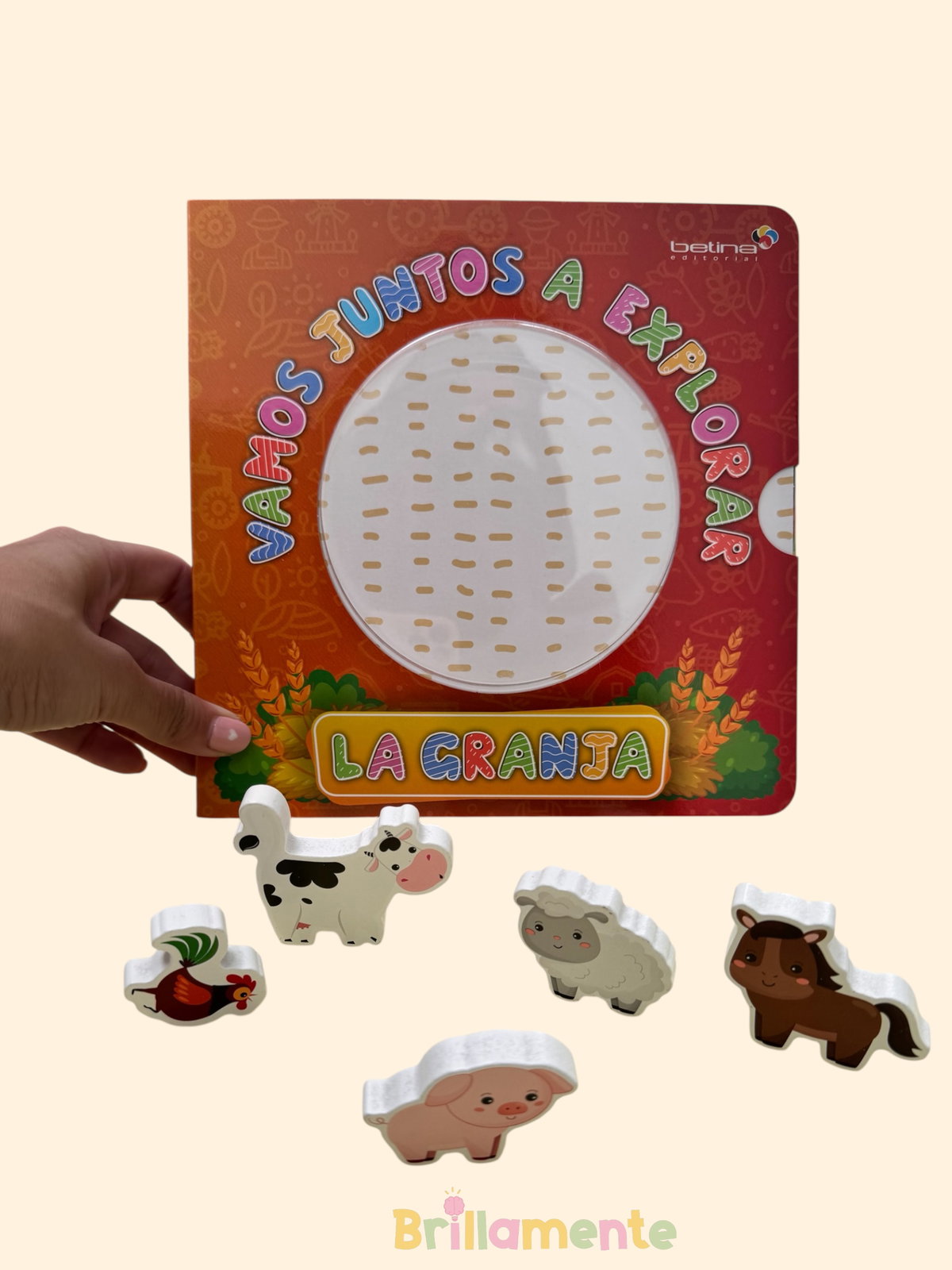 Una propuesta lúdica para conocer el mundo de la granja a través de la exploración. El niño recorre cada página interactuando con los animales, ubicándolos y dándoles vida en cada escena.