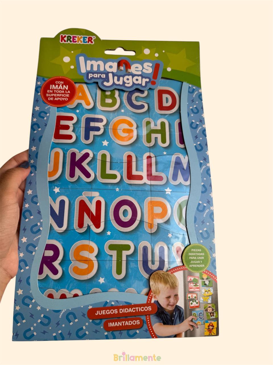 Incluye:  1 lámina imantada en su superficie con imágenes pre-cortadas para armar el abecedario. 24 piezas.
