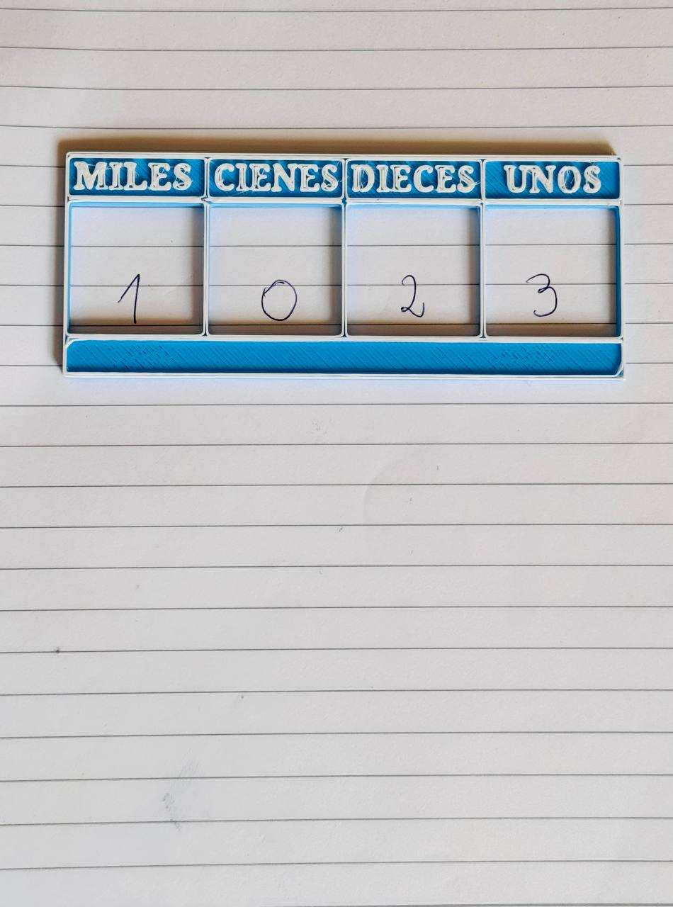 Cuenta con casilleros individuales rotulados que permiten ubicar cada número según su valor posicional, facilitando la correcta escritura, lectura y comprensión de los mismos. Su diseño visual y ordenado favorece que el niño o niña entienda que el valor de un número depende del lugar que ocupa.