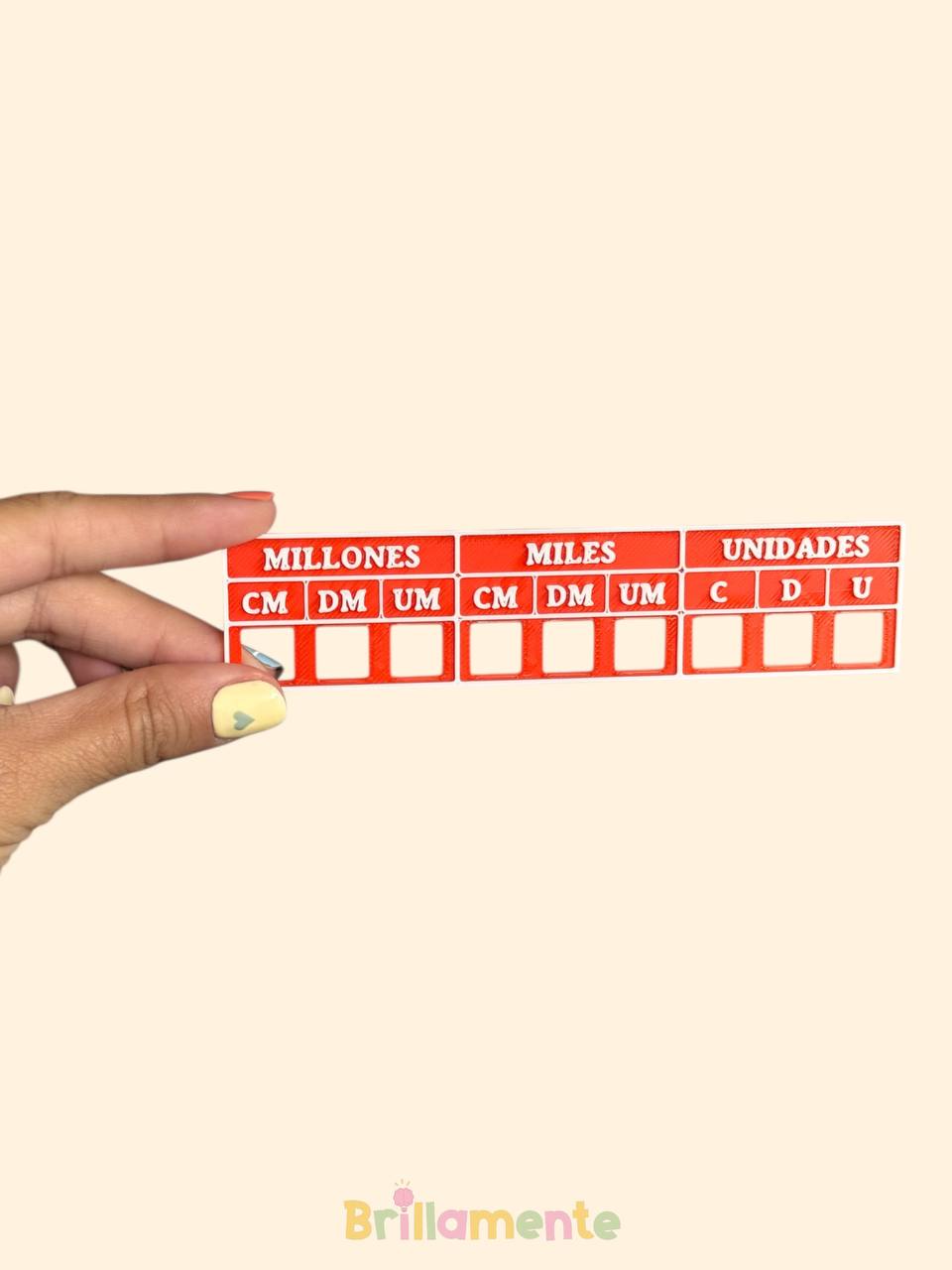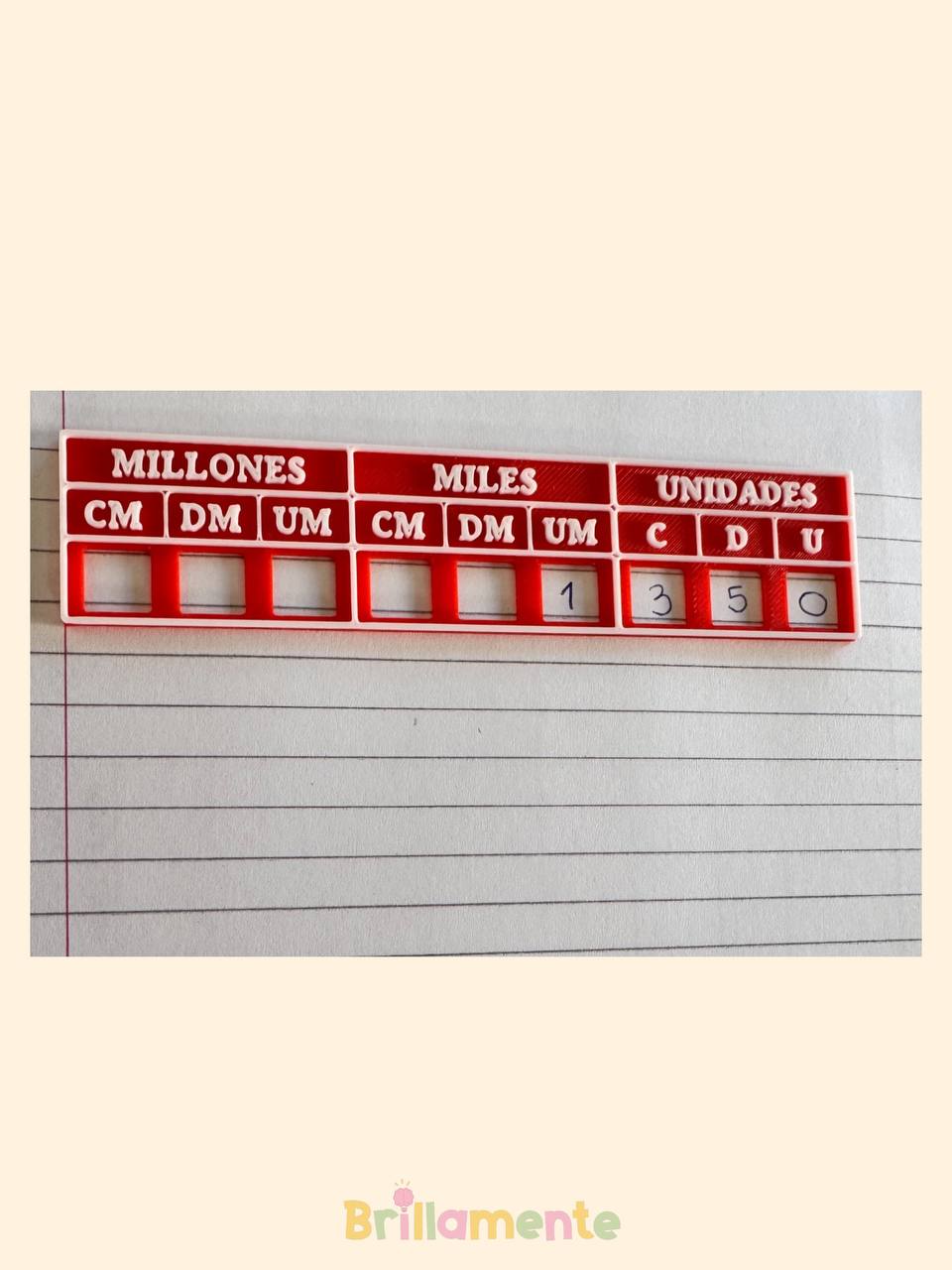 Material didáctico manipulativo diseñado para acompañar el aprendizaje del valor posicional de los números dentro del sistema de numeración decimal.