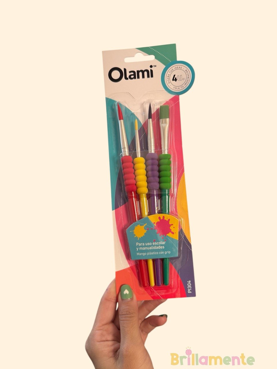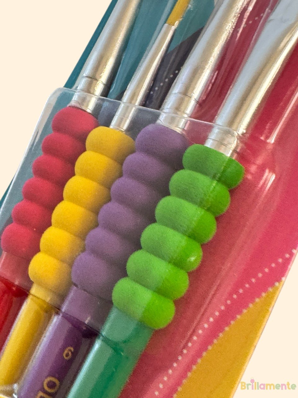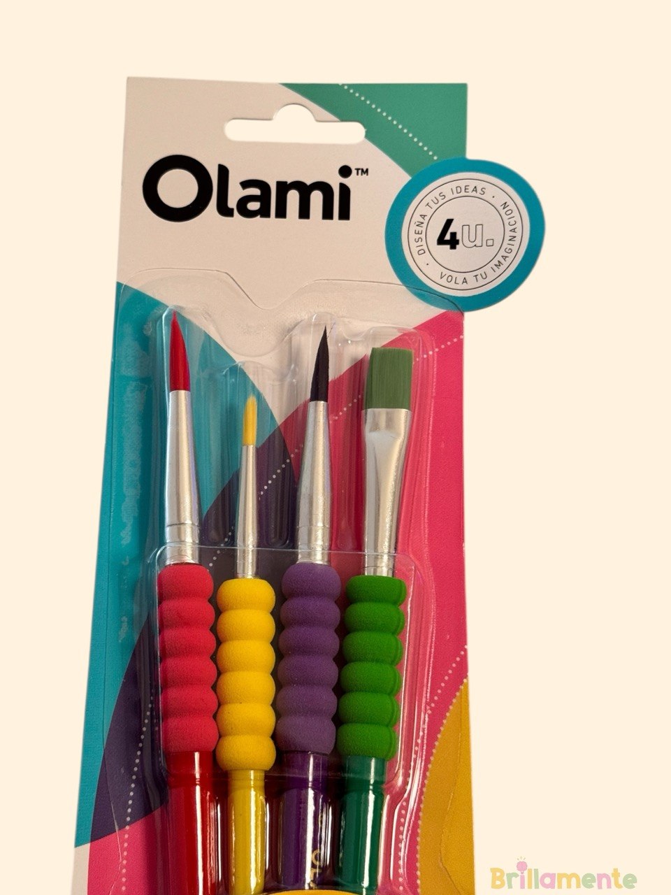 Haz que cada momento creativo sea más cómodo, seguro y divertido. Este set de pinceles Olami está especialmente diseñado con mangos ergonómicos con grip antideslizante, pensados para brindar un mejor control y facilitar el uso, especialmente en manos pequeñas.