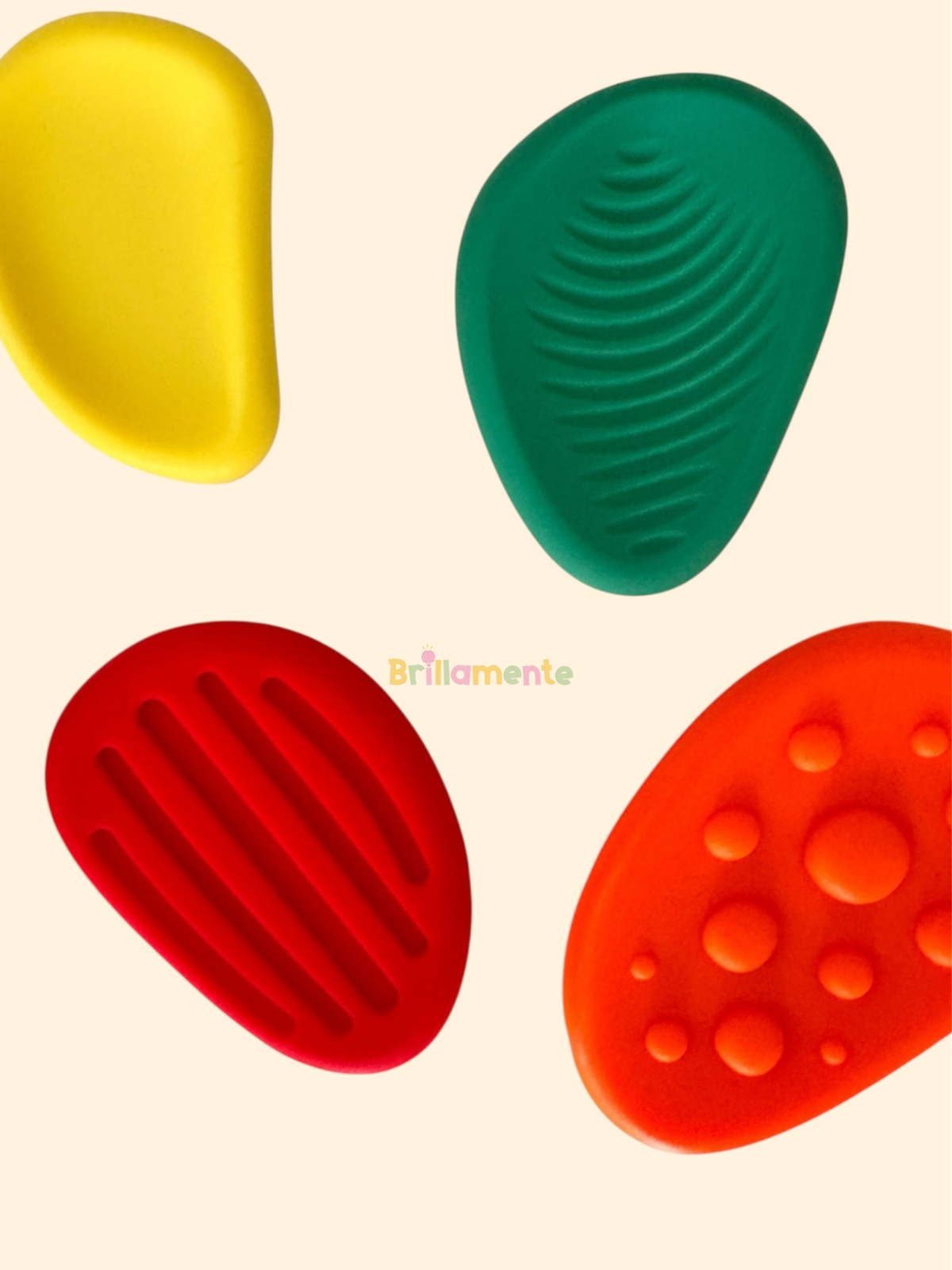 Las piedras sensoriales de goma pueden utilizarse como herramienta de regulación; apretarlas, sentir sus relieves o rodarlas entre manos, ayuda a bajar la ansiedad, mejorar la presencia y sostener momentos de transición.