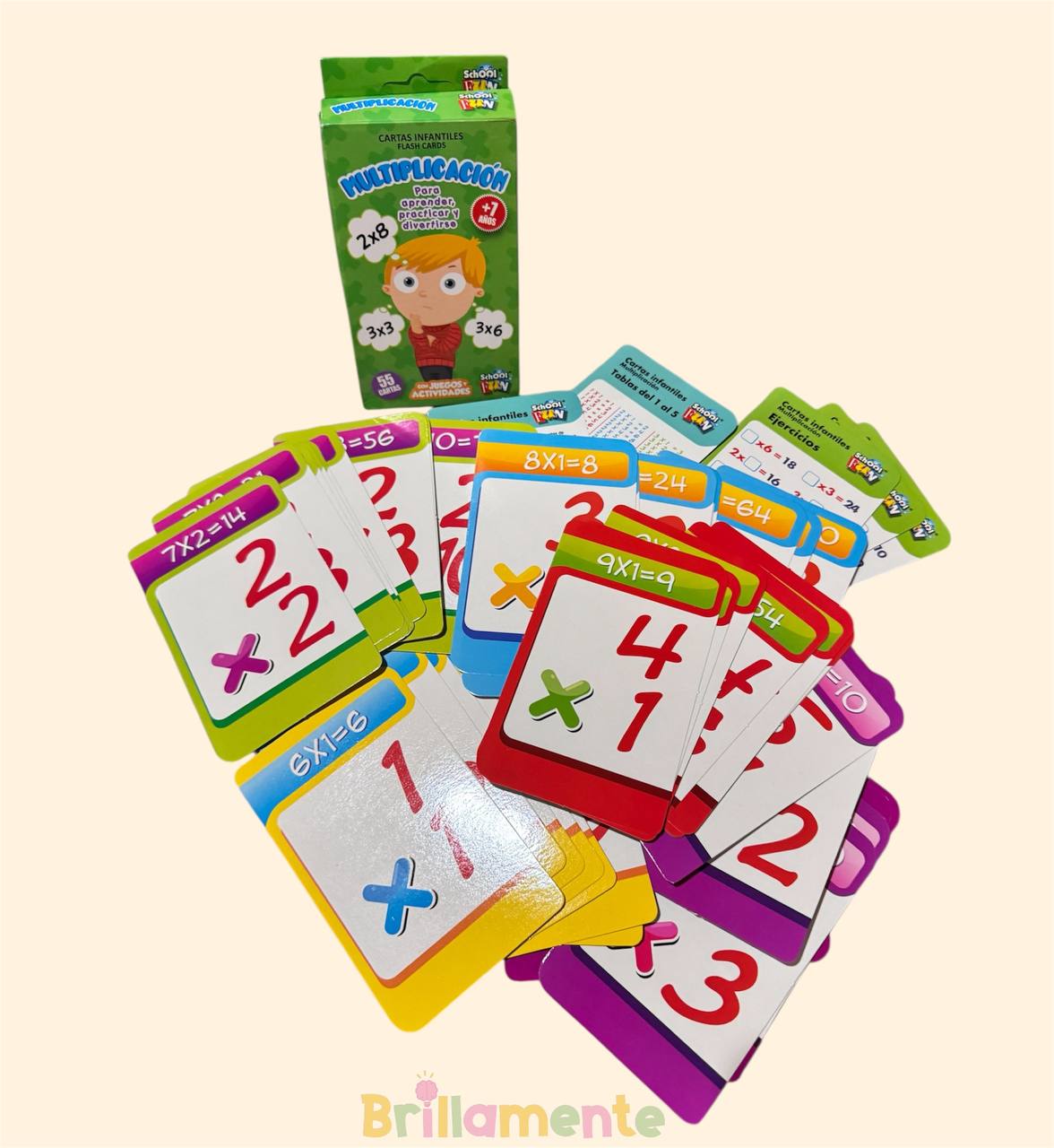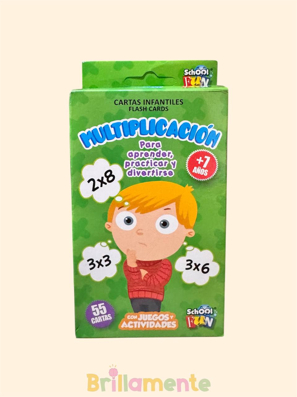 Este set de cartas de multiplicación es un recurso didáctico diseñado para acompañar a niñas y niños en el aprendizaje de las tablas de una manera lúdica, clara y motivadora. A través del juego, invita a aprender, practicar y divertirse, fortaleciendo la confianza y el disfrute por las matemáticas.